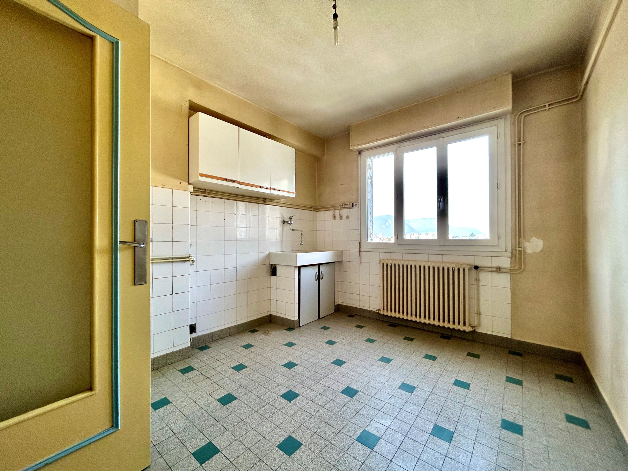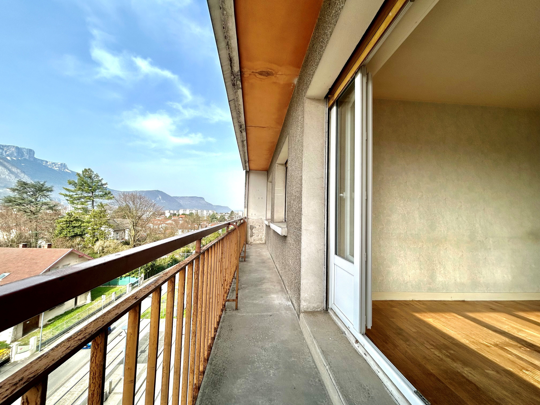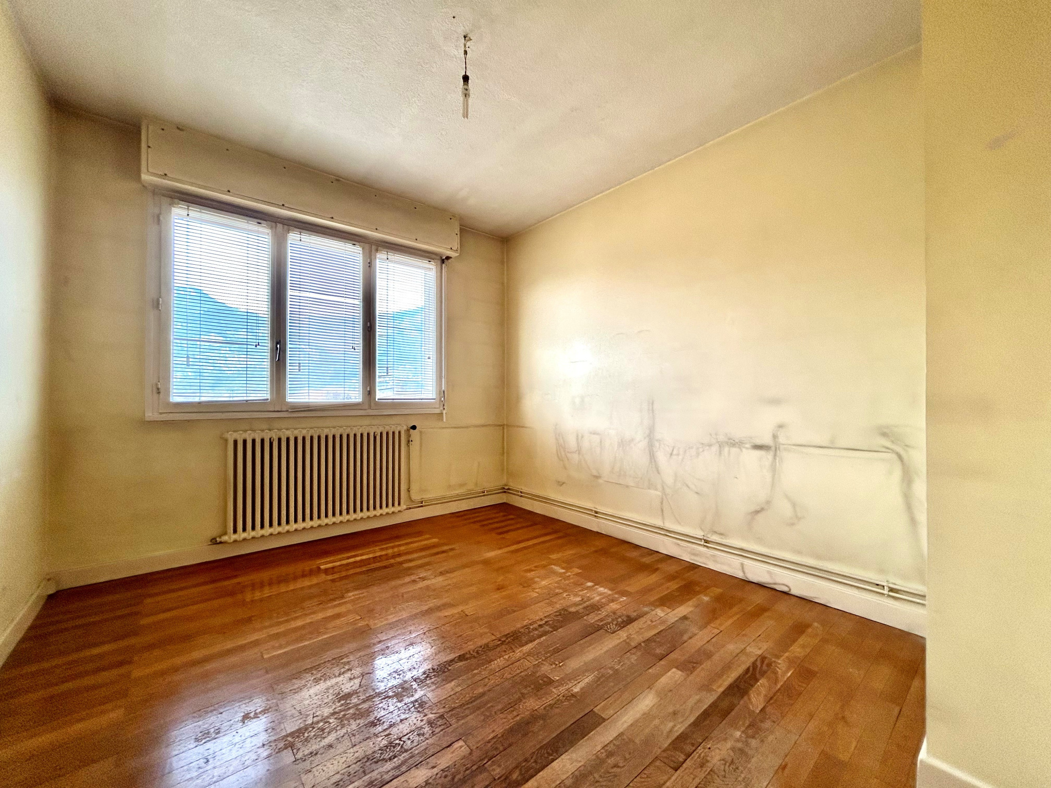 SAINT MARTIN LE VINOUX - Avenue du Général Leclerc, appartement de type T3 de 63m² au dernier étage sans ascenseur d'une petite copropriété. Il comprend une entrée avec rangement, une cuisine indépendante, un séjour donnant sur un balcon de 6.5m², deux chambres, une salle de bains et un WC. Fait rare pour un appartement, il bénéficie d'une triple exposition, sans aucun vis-à-vis et avec une vue dégagée sur les massifs. Une cave de 5m² en sous-sol et la possibilité de stationner à l'arrière de l'immeuble. Ce bien nécessite des travaux de rénovation (cosmétiques et énergétiques). Il est enfin situé à proximité des écoles, commerces et transports. Charges annuelles : 850€ Taxe foncière : 1196€ Copropriété de 20 lots principaux. Prix de vente : 75 000€ honoraires charge vendeur. Les informations sur les risques auxquels ce bien est exposé sont disponibles sur le site Géorisques du Gouvernement.